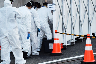 新型コロナウイルスは床からの感染が非常に高いと判断されます。実はダイヤモンドプリンセス号は床の清掃と靴裏の清掃には非常に重点を置いて作業を行いました。