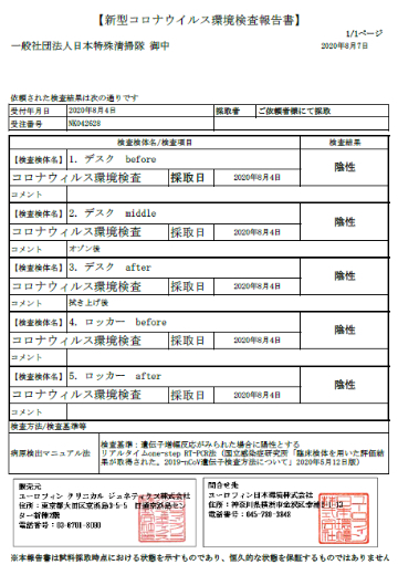 当社では環境測定機関としては世界トップクラスの実績を誇るユーロフィングループと業務提携し当社の作業後のウイルス存在有無を可視化致します。