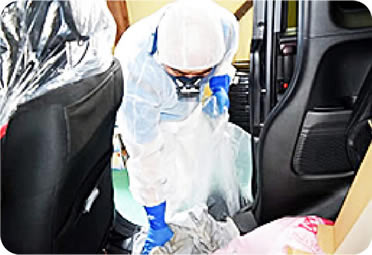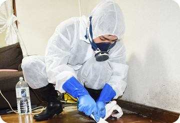 様々な雑菌やウイルスの繁殖などが想定されます。第一作業として雑菌やウイルスなどに合わせた除菌作業を行ったうえで体液などの清掃を行います。