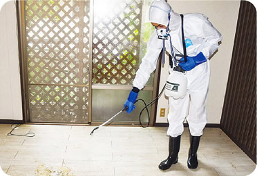 孤独死現場清掃には絶対必要な消毒、汚染物除去、簡易消臭をまとめたお得なプランです