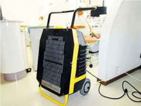 最後に、空間の臭いは作業員の手作業では落とせないので、機械で高濃度オゾンを発生させて空間の洗浄を行います。
