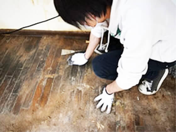 臭いの程度により床や壁に染み込んでクリーニングでは落としきれない場合、壁紙や床板を剥がす事があります。