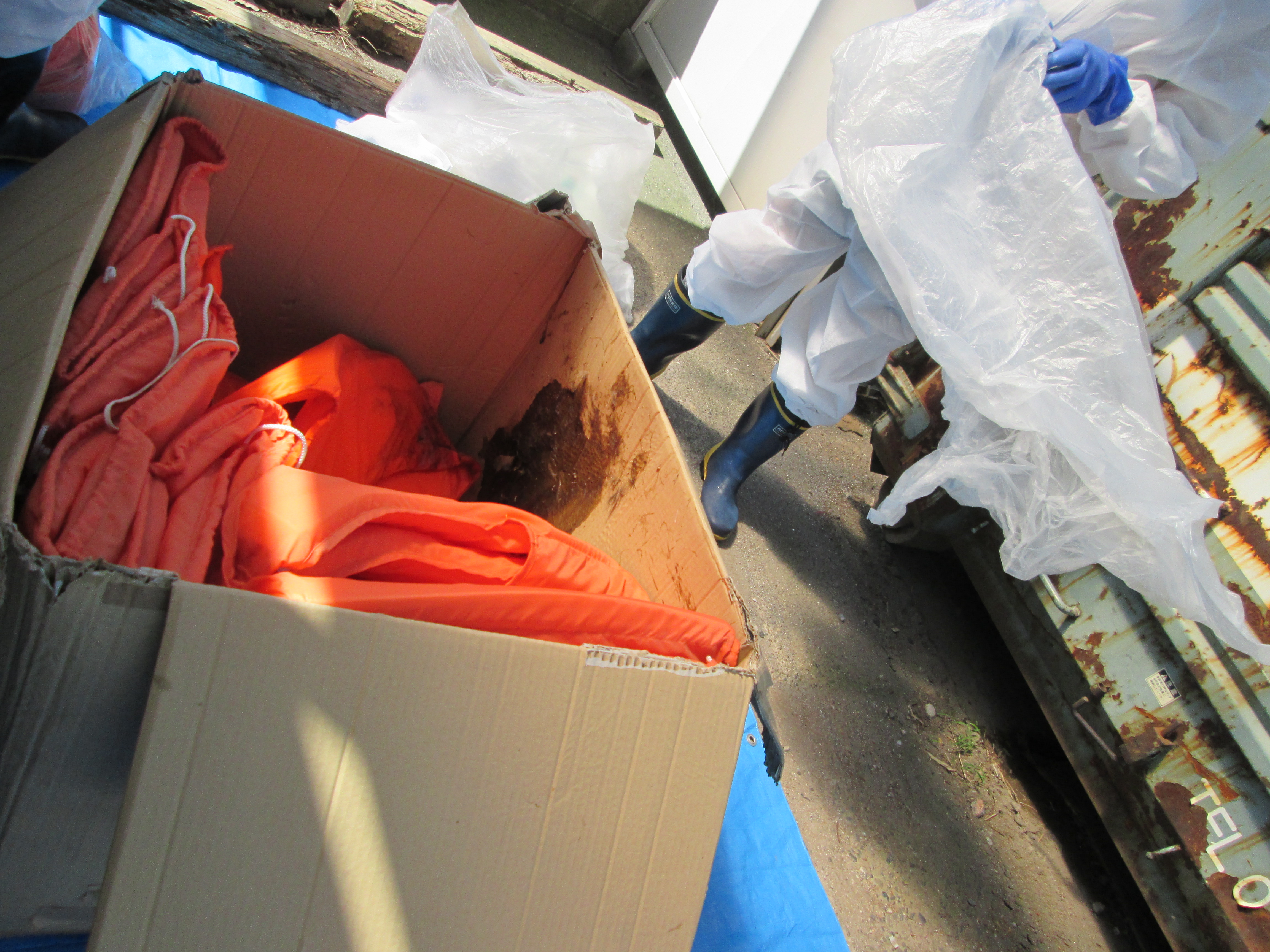 コンテナ内にあった資材はイタチの体液に汚染されていたらしく、処分してもらうことになりました。