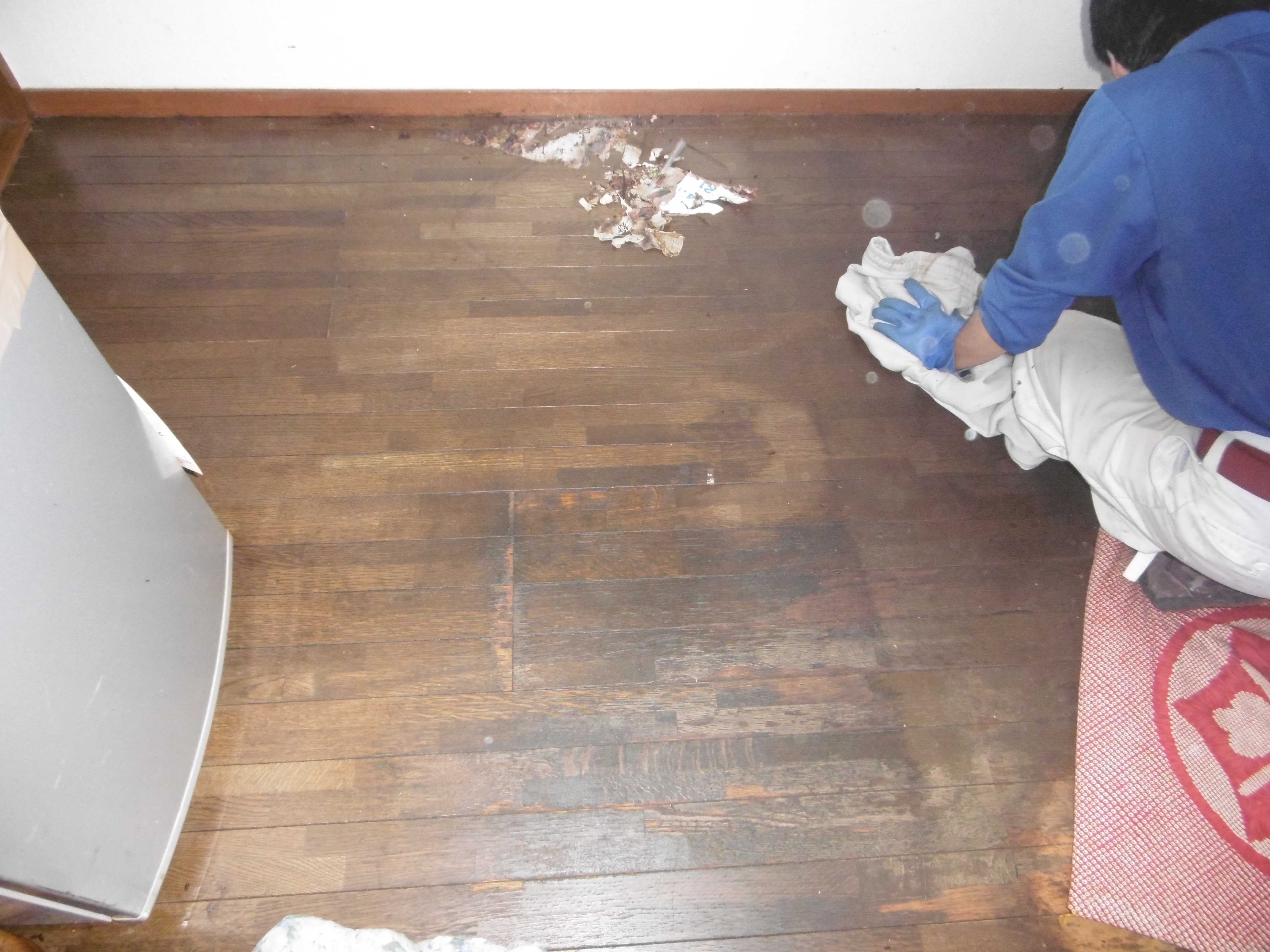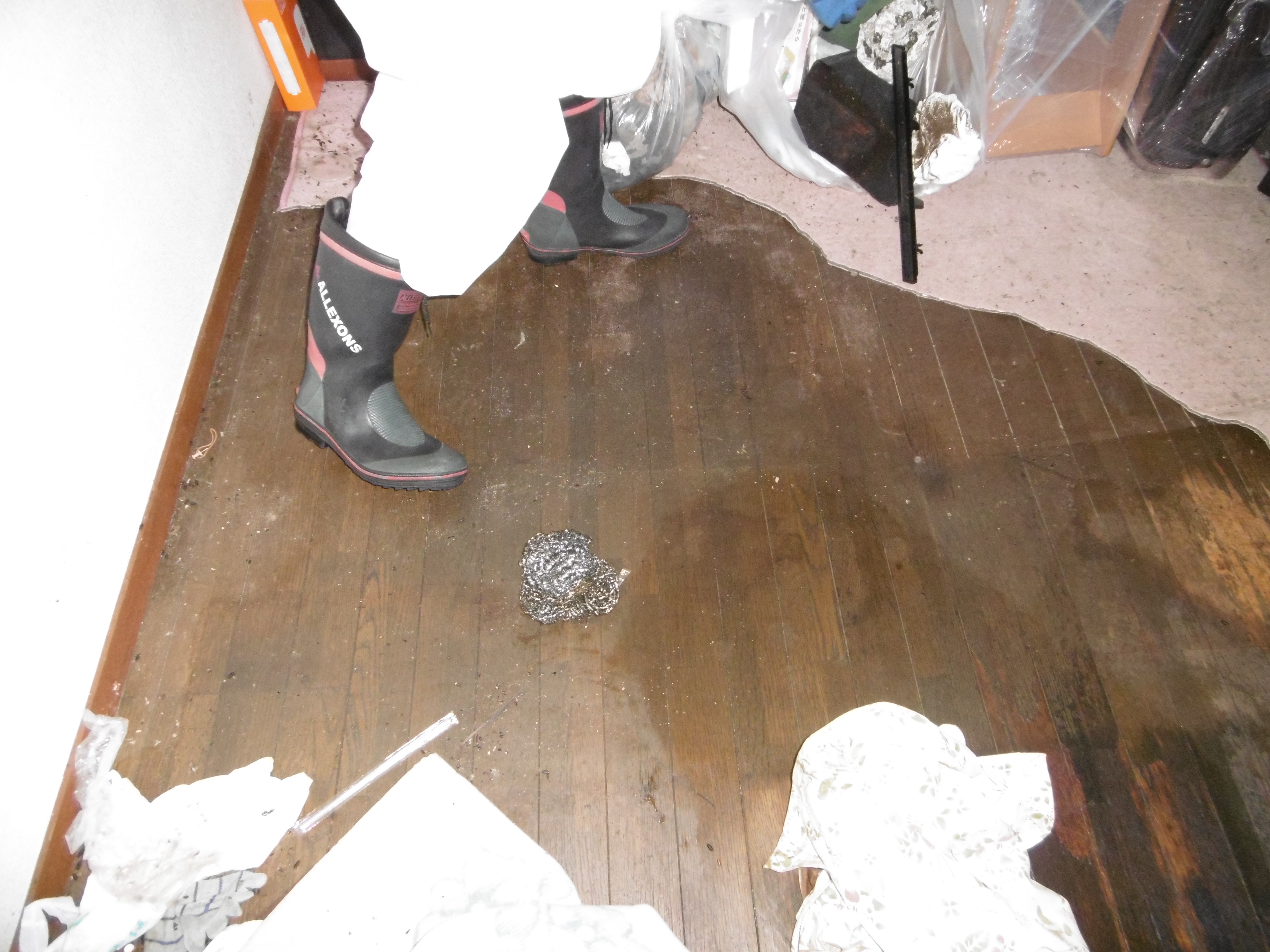 その後はカーペットをつたい床一面に広がっていた汚染物を除去してもらいました。