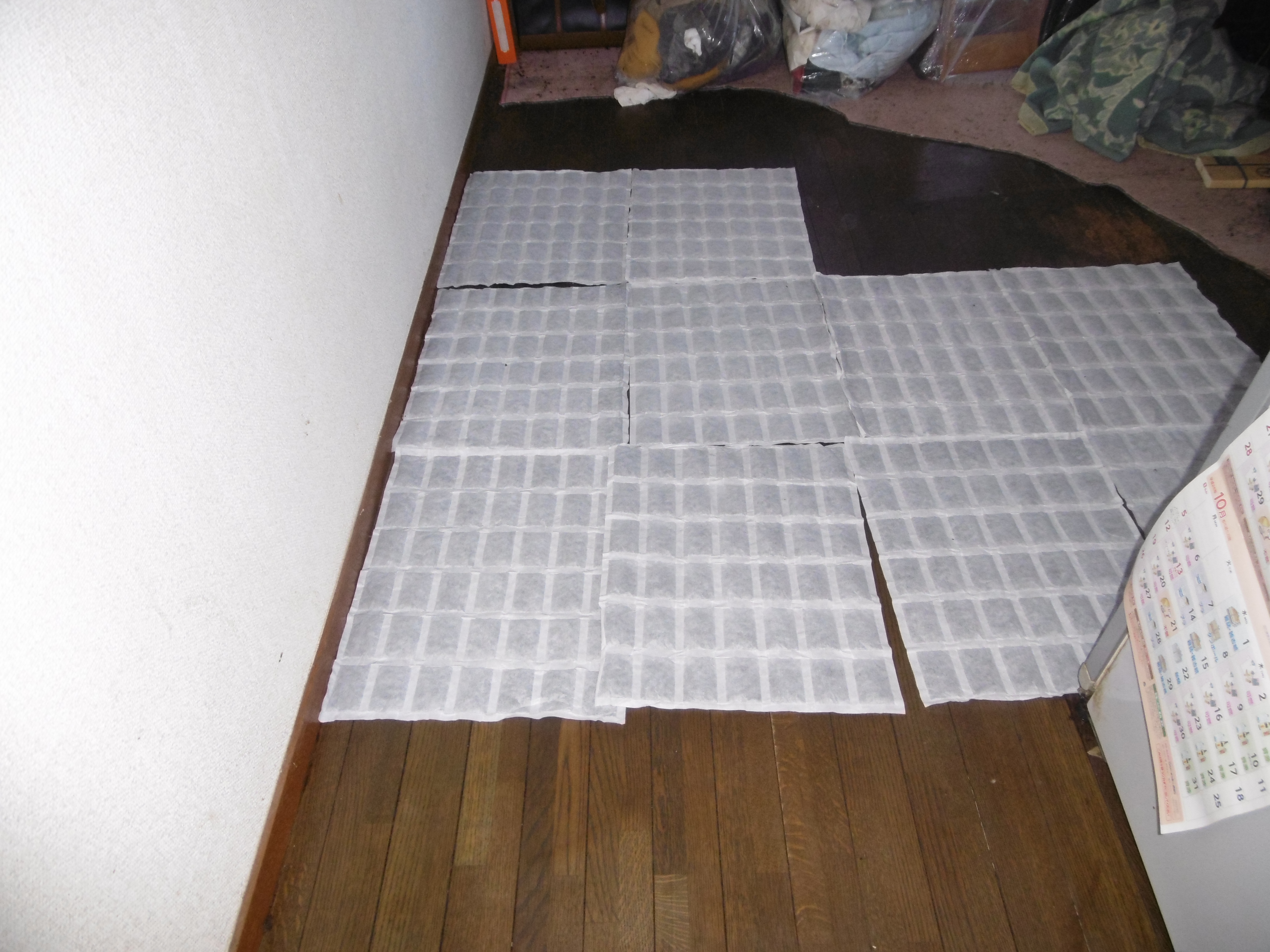 なお、清掃の最後には汚染物が広がっていた箇所からまた臭気が浮かないようにと、死臭吸着シートを並べてもらいました。