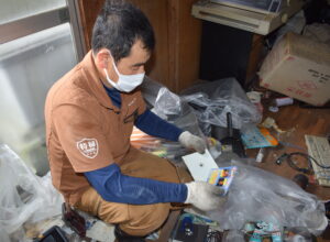 ゴミの分別が進むと、だんだん床が見えてきます。ゴミの下には無くしていたと思っていた衣類や書類なども埋まっており、「これは必要ですか?」とその都度聞いてくださいました。