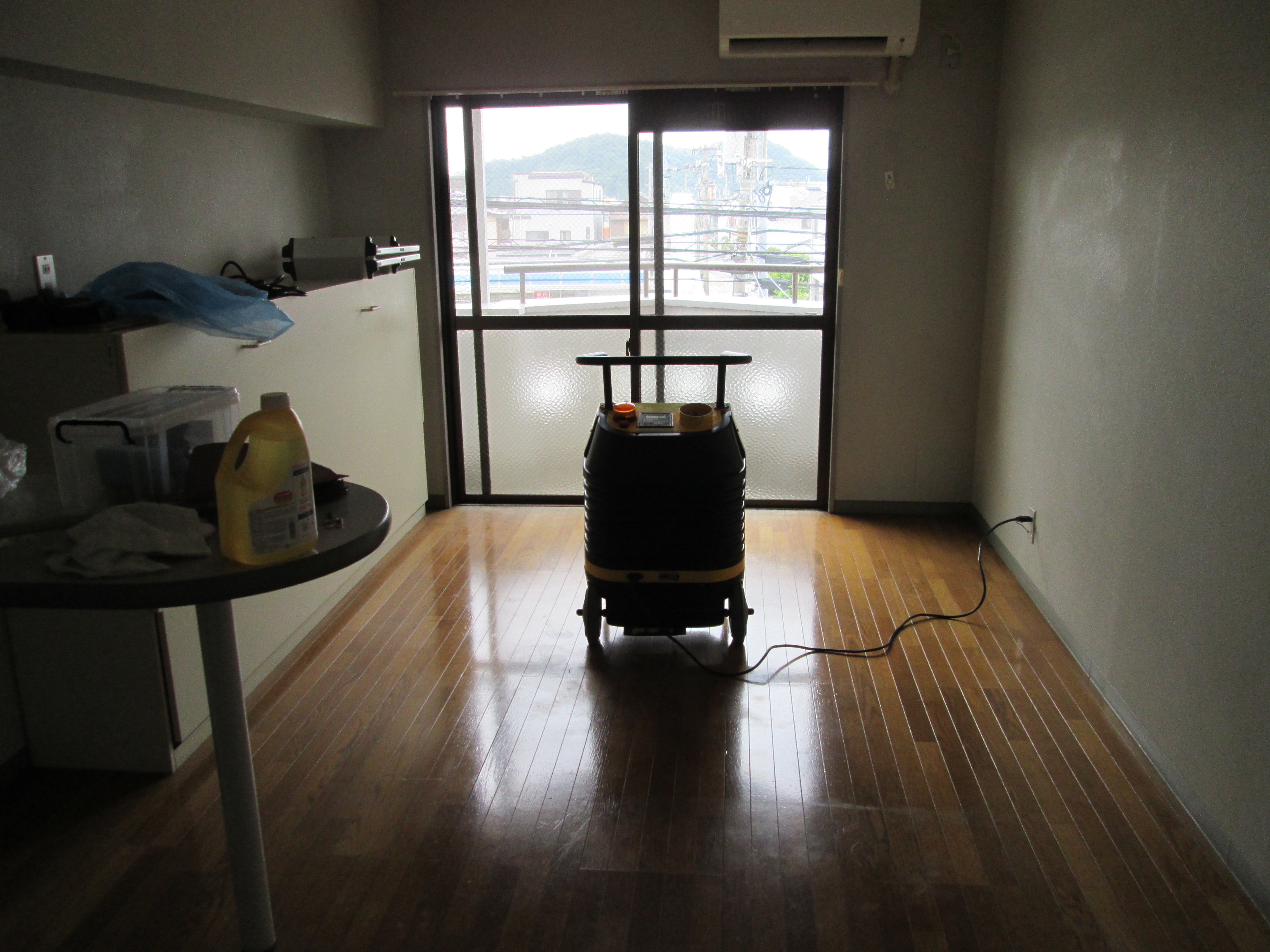 部屋からすべてのものを出したら、ハウスクリーニングを施し消臭作業へ移行していただきます。