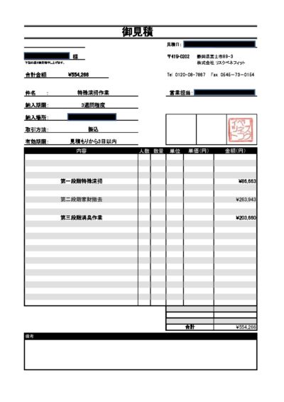 特殊清掃だけでなく、不用品整理も一緒にお願いしたところ、「弊社にお任せください」と快く言っていただき安心です。