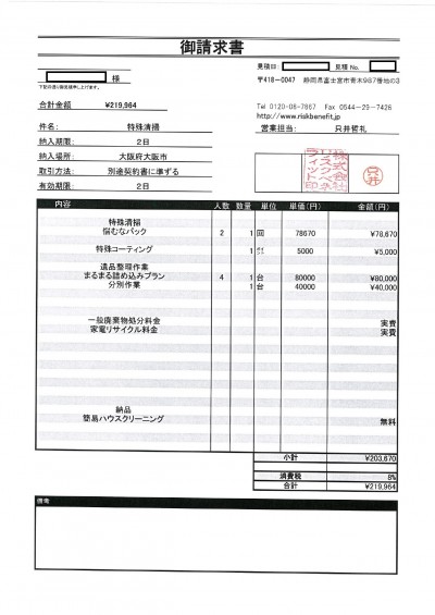 そこで、リスクベネフィット様のホームページを発見し、すぐに電話して清掃にきていただきました。