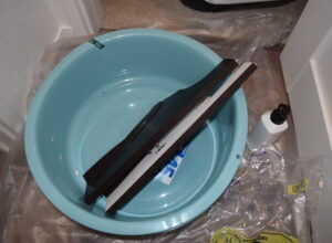 まずはトイレの清掃。便座も外してなかまできちんと清掃を行い、汚物を除去。