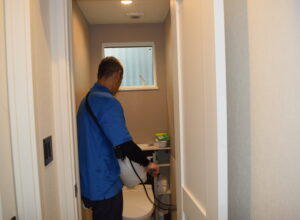 次に消毒剤の散布です。