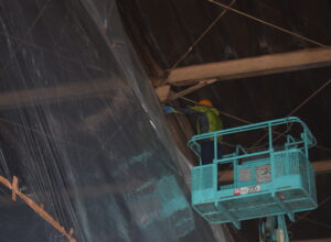 工場再建に向けて、全焼した工場を一度解体することになりました。