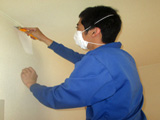 消臭作業の準備がある程度完了した後は、壁紙などのクロスを剥いで作業に移ります。
