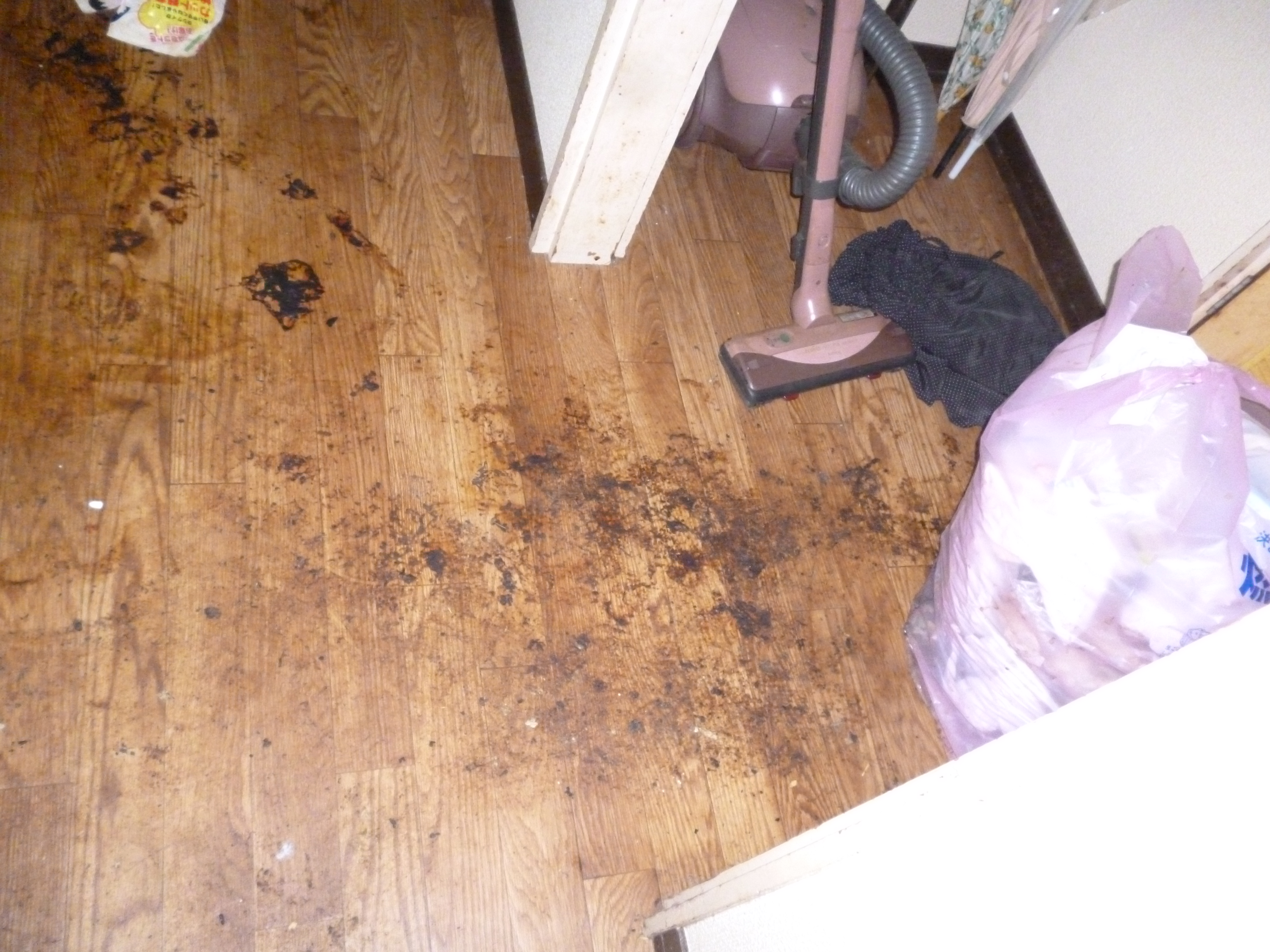 部屋の状態を見ていただいた後、すぐに特殊清掃に入っていただきました。