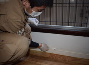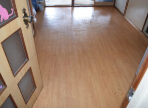細かい部分の清掃や全体の拭き掃除が終わると、フローリングの話になりました。こちらは思った通り、フローリングの奥まで臭いが染みこんでしまっているので、臭いを無くすためには解体か、特殊コーティングしかないようです。