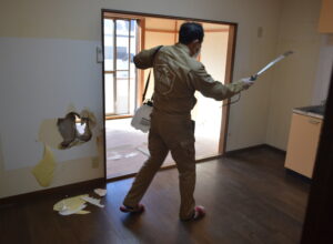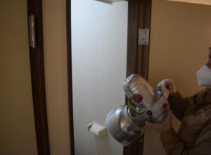 特殊コーティングとは、リスクベネフィットさんが作った薬剤を表面に塗ることによって、内部の臭いを封印することができる技術です。解体をしなくてよいならとても助かるので、フローリングにはこの特殊コーティングを施していただきました。
