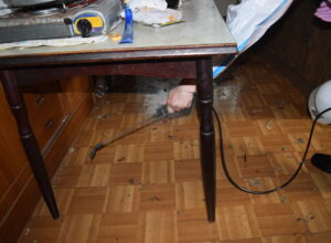 台所と隣接する和室が特に臭気が強く、他の部屋も軽度な臭いを放っていたとのことで長時間の作業が行われていました。