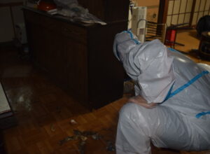 確認したところ、発見された時期が亡くなってから2週間後と大幅に遅れたらしく、掃除をしようにも二次感染が心配で作業できません。